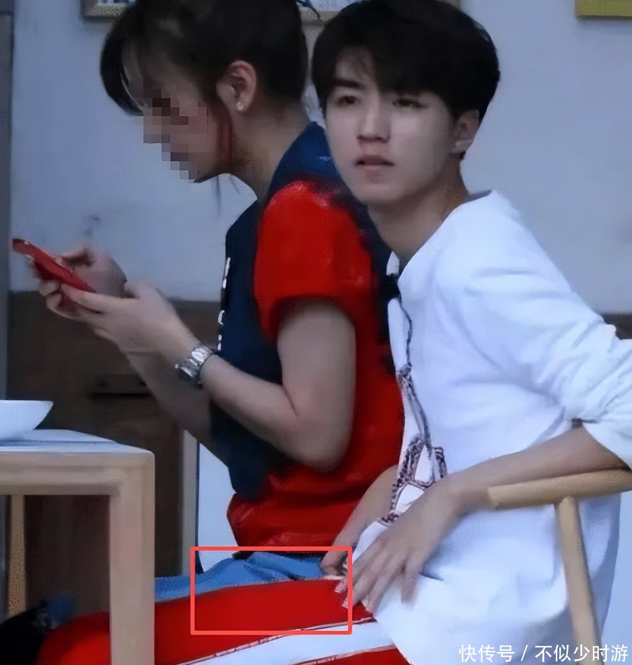 赵薇裙摆与王俊凯腿部出现视觉重叠。